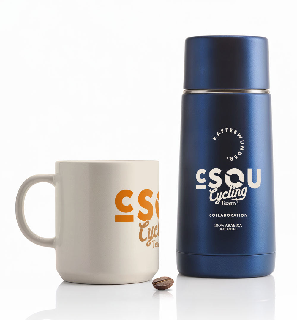 Ebenfalls waren Kaffee-Merchandise-Produkte wie CCT-Kaffeetassen und Thermos-Kaffeemugs für den Onlineverkauf in Planung – starke Alltagsbegleiter, die die Teamidentität auch abseits der Strecke sichtbar machen.